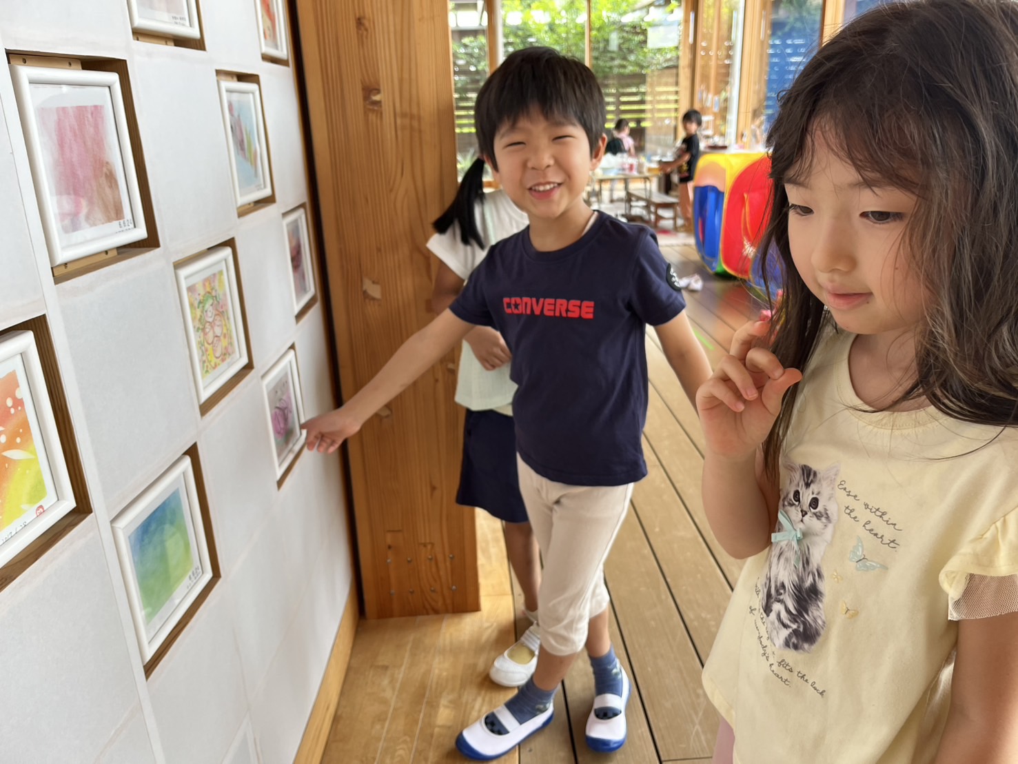 製作したパステルは遊戯室の前のギャラリー通りに飾ります。